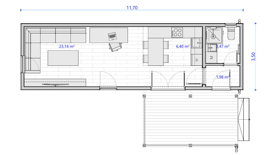 A külső nyílászárók fokozottan hőszigetelt, 6 légkamrás 3 rétegű üvegezéssel, acél betétes műanyag szerkezettel készül kívül – belül fehér színben, fehér, műanyag, manuális redőnnyel, rovarhálóval. Fűtés inverteres 3,5 kW-os klímával, kérésre elektromos kiállás infrapanelnak., melegvíz ellátása 80 L-es elektromos villanybojlerrel.